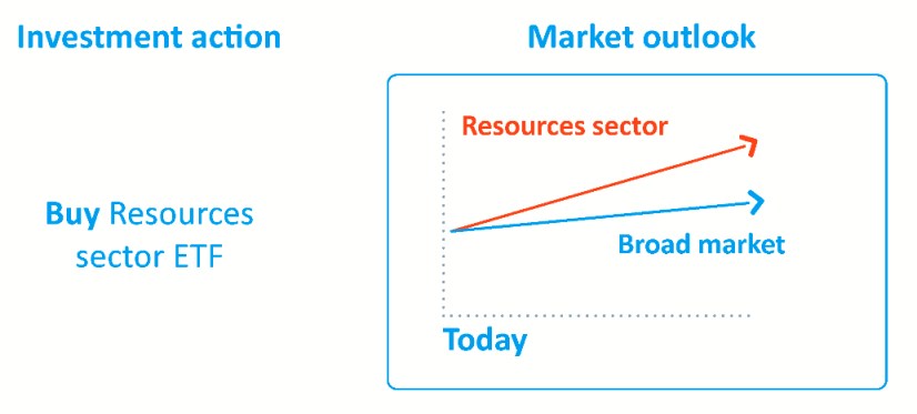 For example, if you think the Resources sector will outperform the broad sharemarket, you could buy an ETF that tracks the S&P/ASX 200 Resources index.