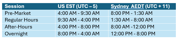 While traditional US market hours are 9:30 AM to 4:00 PM EST, extended trading sessions allow investors to trade outside this timeframe, translating to more convenient evening and morning hours for Australian investors.