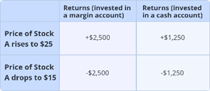 If Stock A surges to $25 as Jack expected, his returns could be $2,500. In this case, his returns are doubled compared with buying without a margin loan. However, if the stock tumbles to $15, his losses are also doubled.